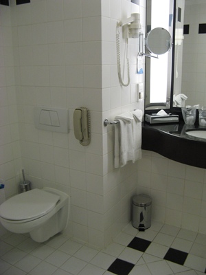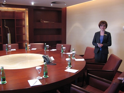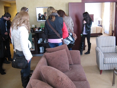 Druhou zastávkou bol hotel Crowne Plaza, kde sme boli rozdelení na dve skupiny a venovali sa nám dvaja manažéri. Žiaci videli priestory, ktoré sú k dispozícii najmä kongresovej klientele, ale aj ubytovacie priestory, oboznámili sa so štandardmi hotelovej siete a videli uplatnenie naučenej teórie z predmetu gastronomický manažment v praxi.