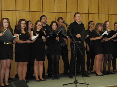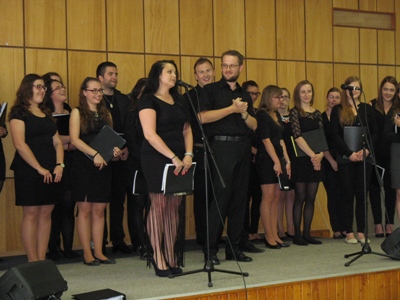 Akademický spevácky zbor pri PF UKF v Nitre (basgitara, bicie, klavír), ktorý interpretuje diela známych slovenských, ako aj svetových autorov pod vedením zbormajstra Mareka Štrbáka predstavil publiku viac hudobných žánrov. Koncert sprevádzala jeho organizátorka Beáta Zbonková.